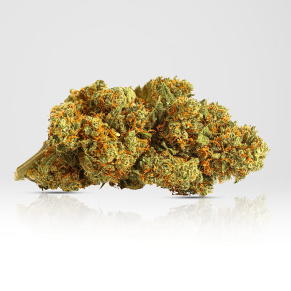 Cime compatte dall’aspetto gelido con peli arancio brillante. I terpeni dominanti in questa varietà sono il pinene, myrcene con una leggera presenza di linalolo.